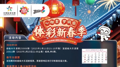 活动 山东专属!超级大乐透套餐票600万元赠票送惊喜 体彩新春季,为回馈山东购彩者,山东专属的超级大乐透套餐票... 来源:山东体彩2025-01-15